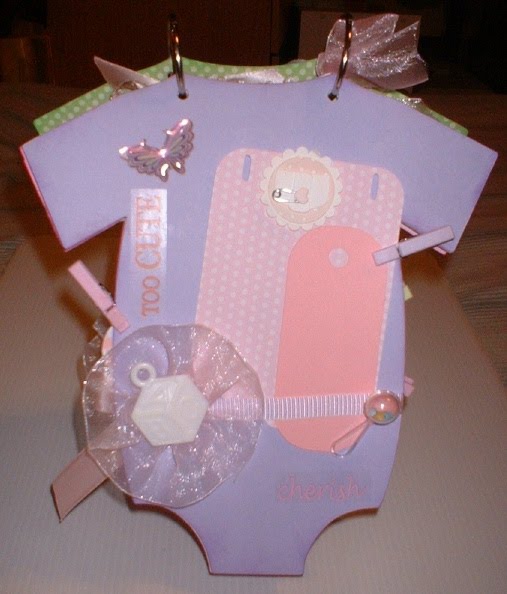 I created this cute Baby Girl Mini Album with my Cricut, using the "New Arrival" cart (Tags) and the Sugar & Spice cart (Frames) and added a few embellishments I already keep on hand for party favors. I was inspired to do this project after watching a few videos. This was a pleasure to make and took most of the day. So, I did a fulls days work and a wonderful creation. I still need to find some large brads for the rings to preserve the holes. Thanks for stopping by.